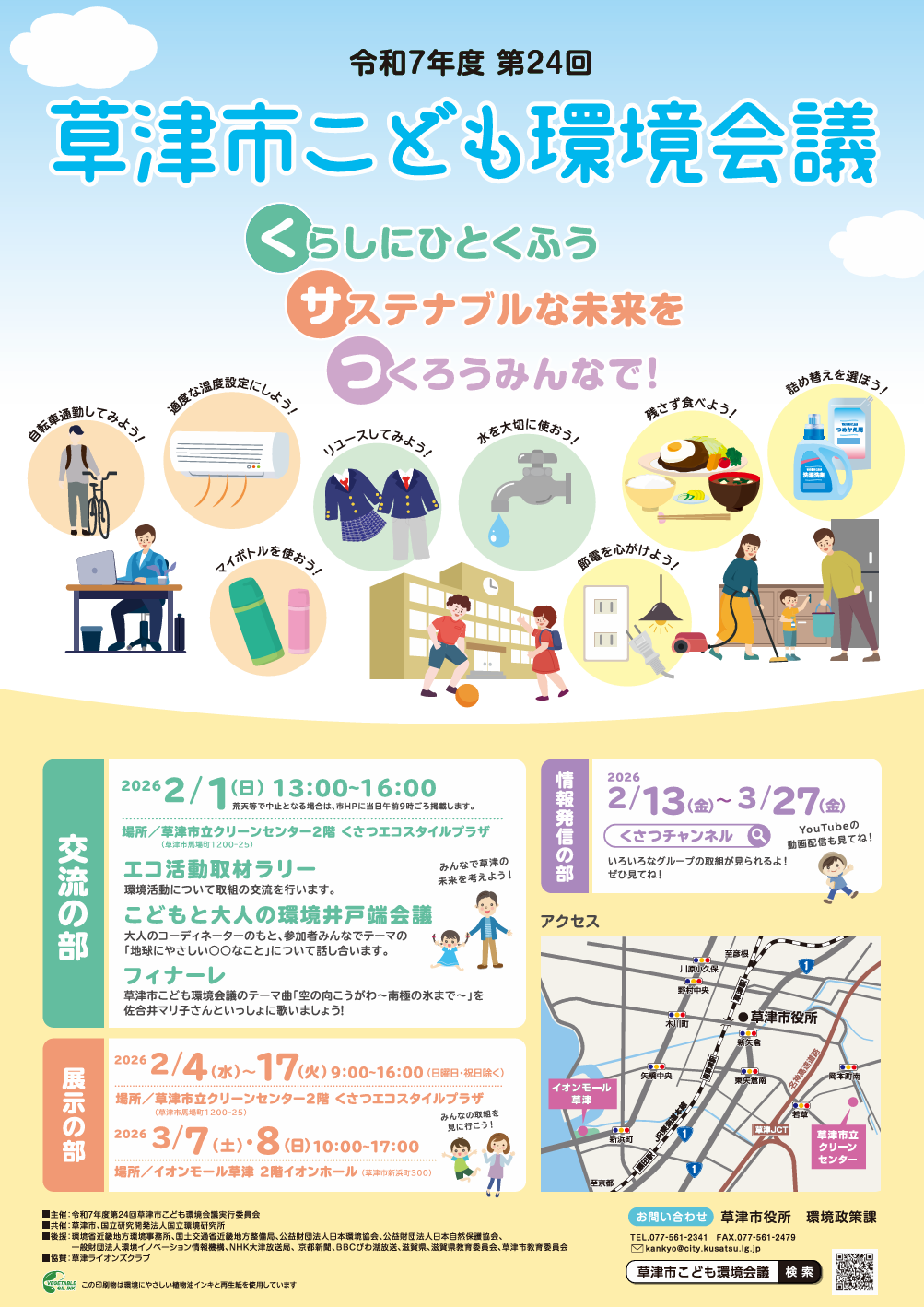 今年度は『くらしにひとくふう サステナブルな未来を つくろうみんなで!』をテーマに、「交流の部」「展示の部」「情報発信の部」の3つのプログラムで開催します。
