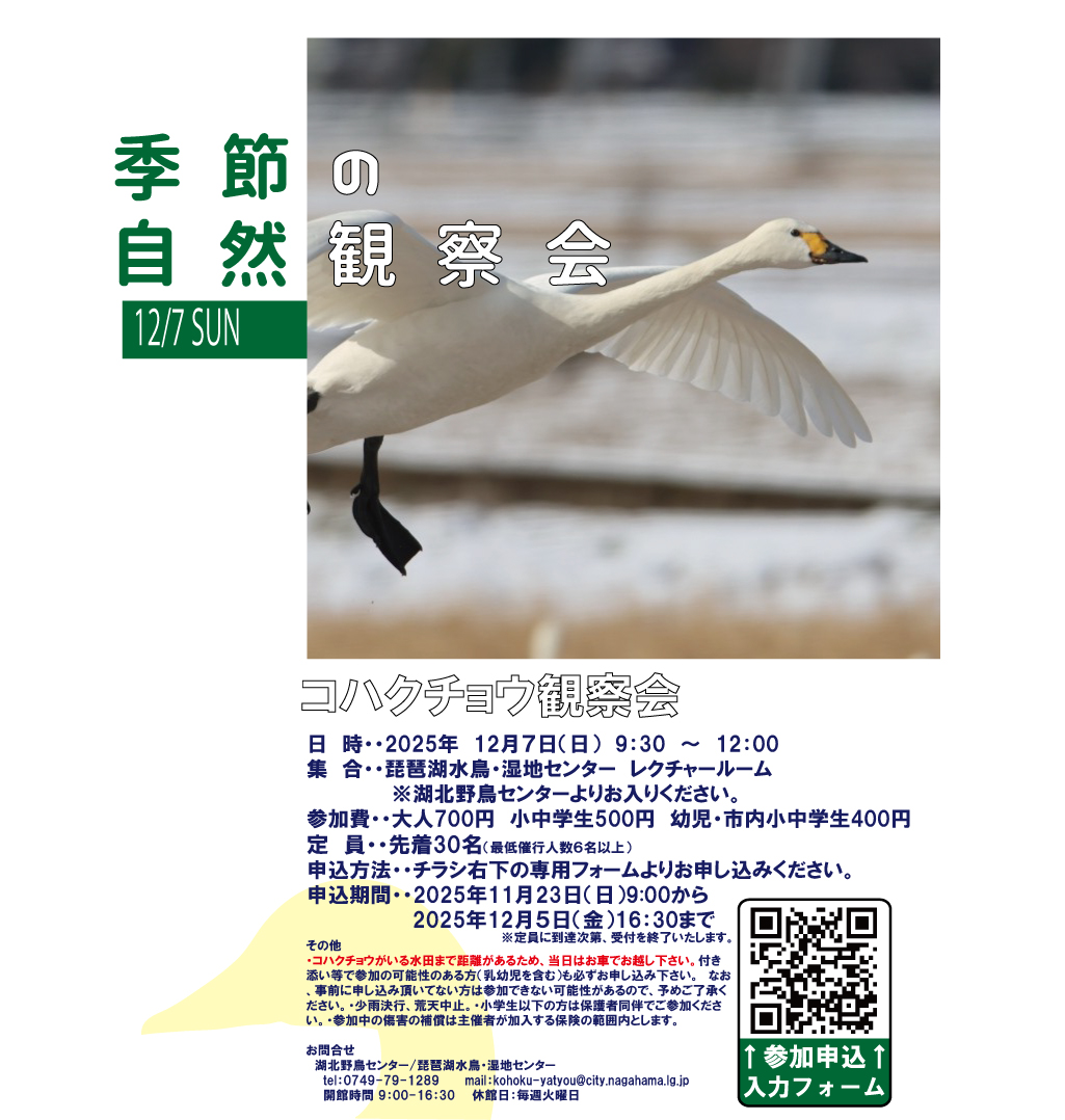 申込開始/ 11月12日(水)より、定員になるまで受付 ※開館日の9時~16時30分