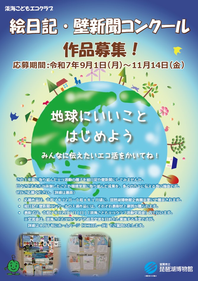 6月下旬に「エコロしーが」HPにてお知らせしました “淡海こどもエコクラブ 絵日記・壁新聞コンクール” の締切は11月14日(金)です。