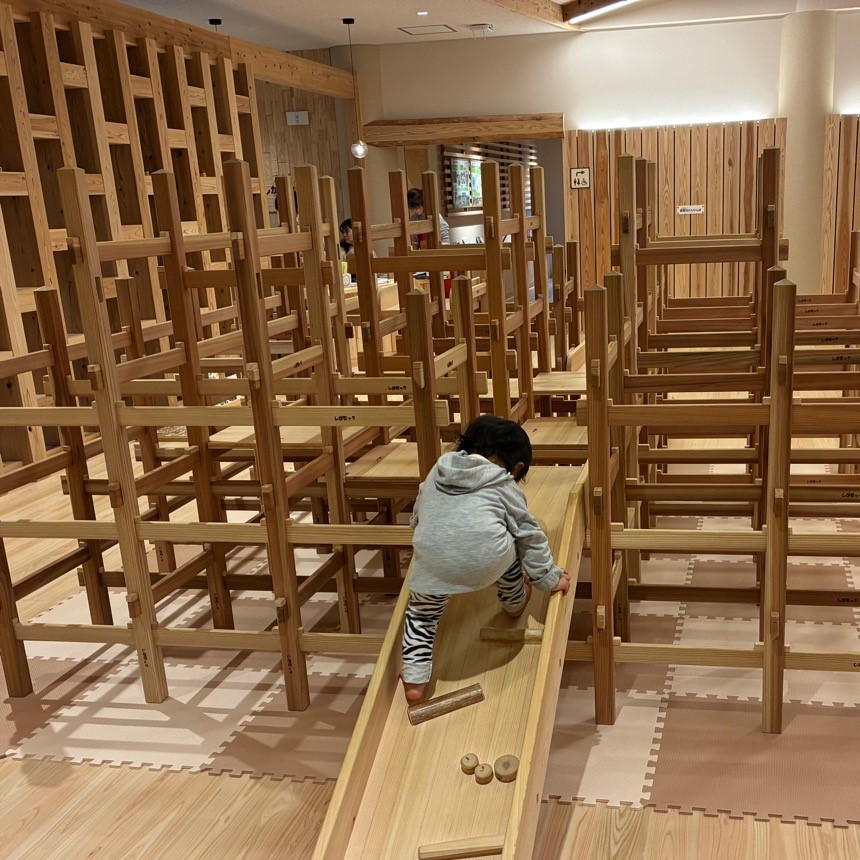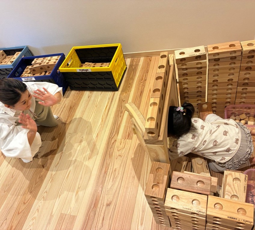 子どもたちはそれぞれ、もくもくと木のおもちゃで遊ばれていました。森の木々が静寂のなかで成長するように、子どもたちの創造力がこの場所で静かに育まれていました。
